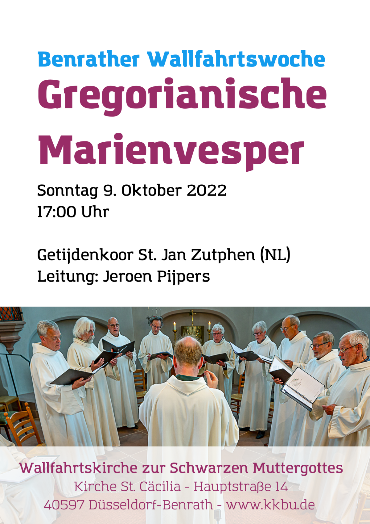 Als Auftakt der Wallfahrtswoche laden wir am Sonntag, den 09. Oktober, herzlich zu einer Gregorianischen Marienvesper um 17.00 Uhr in St. Cäcilia ein.